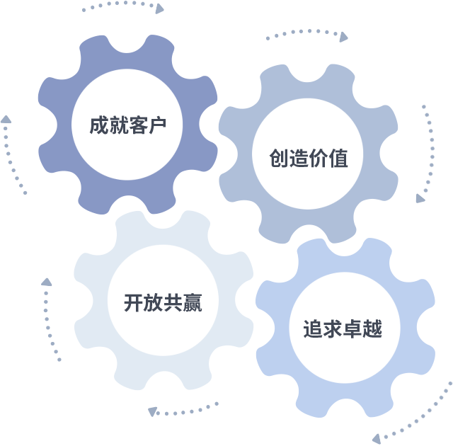 成就客户是一切决策的出发点,创造价值是衡量所有工作的标准,追求卓越是佰富彩做事做人的态度,开放共赢是佰富彩的格局也是最终的结果。价值观的齿轮环环相扣,推动着组织里的每个人不断向前。